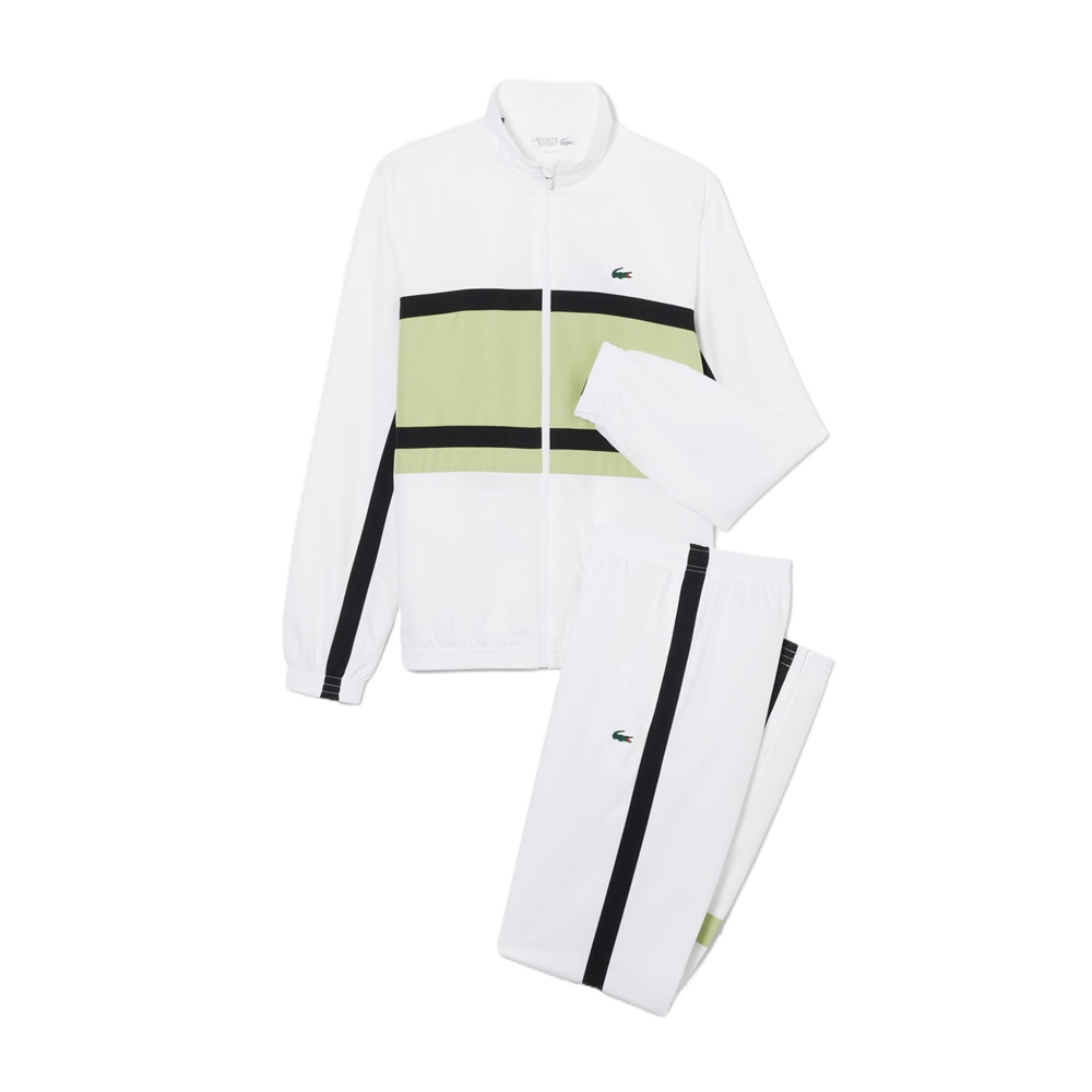 Zugeschnittene und vernähte Colorblock-Einsätze auf Brust, Ärmeln und unten an den Beinen