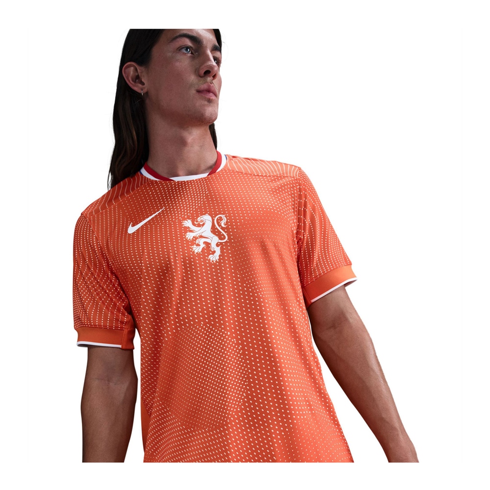 Das Heimtrikot der Niederlande für das Jahr 2025 wurde von der markanten, schlichten Optik des niederländischen Designs inspiriert. Das traditionelle Orange erhält einen neuen Touch mit einem Print, der den Ikonen der modernen Kunst Tribut zollt.