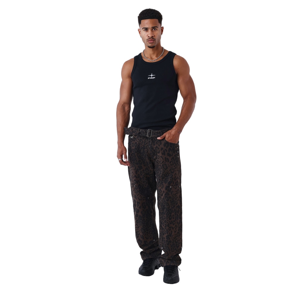 Jeans im Zimmermannsstil mit Leopardenmuster